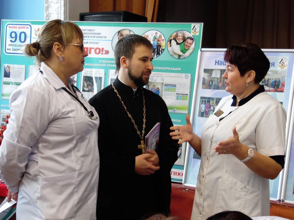 А настоятель храма священник Алексий Завгородний общался с посетителями и врачами, отвечая на их вопросы о болезни и здоровье в христианском понимании. Батюшка напомнил собеседникам, что к здоровью надо относиться как к дару Божию и беречь его.