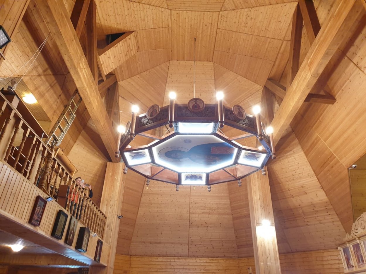В храме во имя святой великомученицы Варвары поселка Рахья Ленинградской области установили большой деревянный хорос с ликом Спасителя.