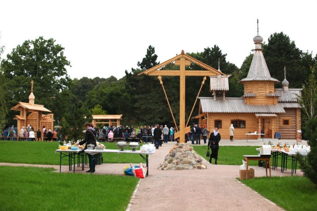 14 июня был установлен и освящен поклонный крест, ставший центром ансамбля. Изготовлен крест насельниками скита преподобного Сергия Радонежского в Рязанской епархии. Из России привезен и сруб деревянной церкви.