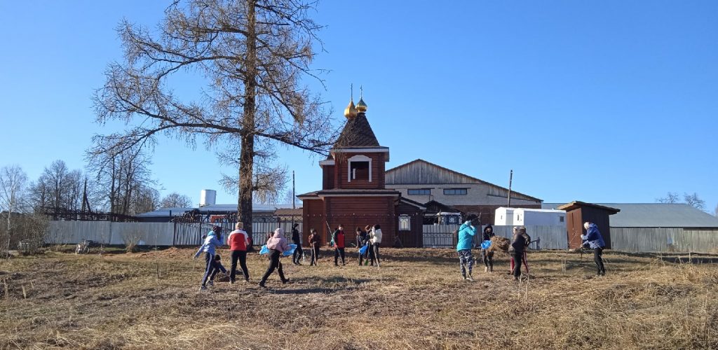 Приходы.ру. 28.04.2021. 23 апреля воспитанники православного кружка «Омофор» при Покровском приходе в селе Новопокровском Нижегородской области убрали территорию своего храма, чтобы подготовить его к Пасхе. Дети помогают создавать красоту с первых дней существования сельской церкви.