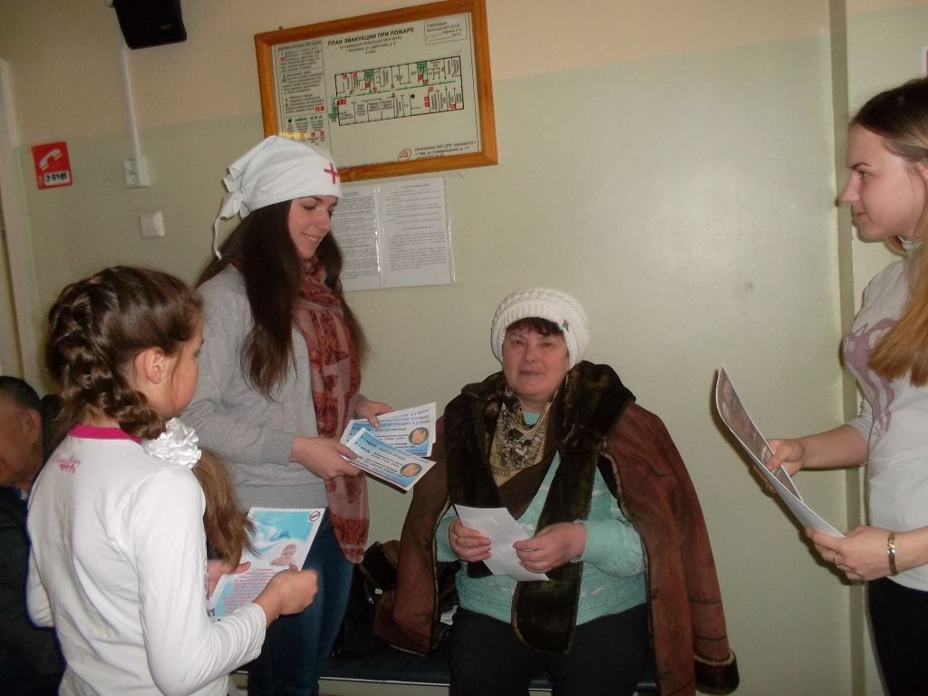В городской поликлинике №2 по благословению настоятеля прихода священника Олега Ерофеева и по договоренности с акушером-гинекологом Г.А. Канаевой девочки раздавали всем женщинам, ожидающим приема у врача, листовки и брошюры против аборта.