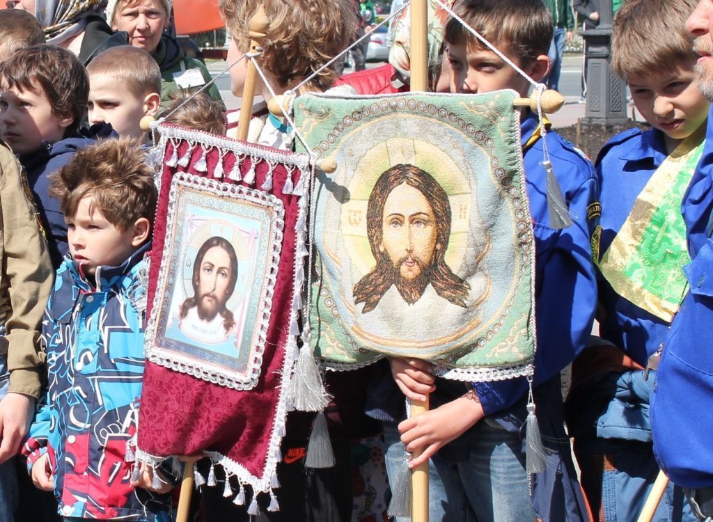 По замыслу организаторов, детская колонна будет экипирована в красные пасхальные курточки с символикой детского православного движения, возглавит ее отряд барабанщиков.