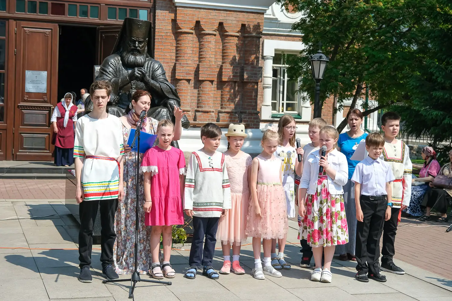Приходы.ру 09.06.2023. 7 июня, в день Третьего обретения главы Предтечи и Крестителя Господня Иоанна, после богослужения в красноярском храме, отметившем престольный праздник, состоялось развлекательное мероприятие для детей. Празднвание прошло в сквере у храма.