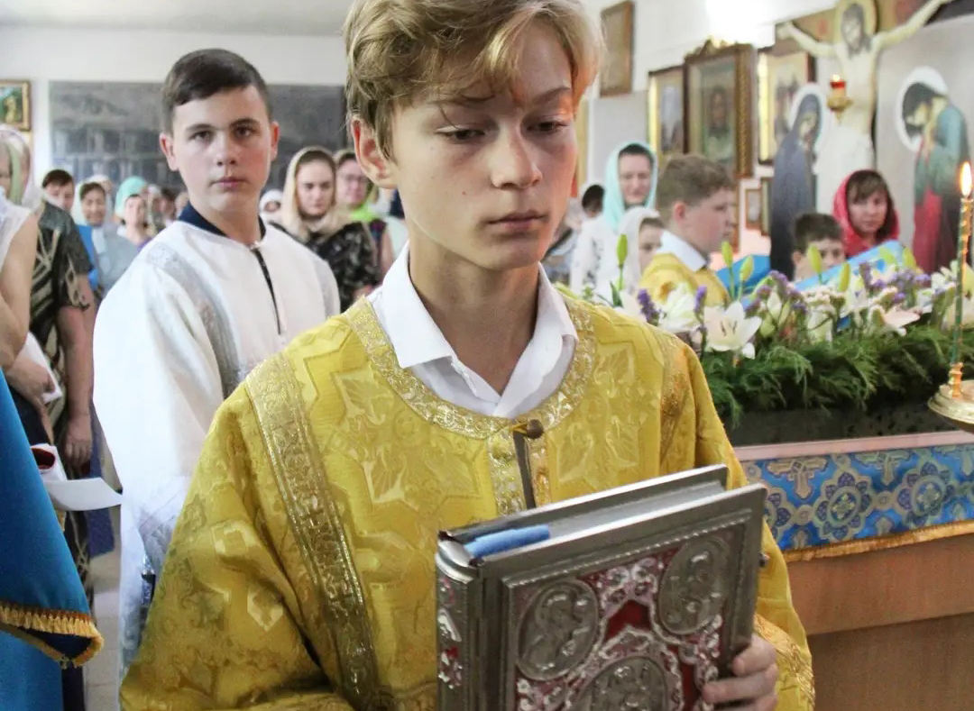 Ученики приходской воскресной школы несли послушания не только певчих, но и чтецов, пономарей, свечниц. Они помогали работникам лавки и просфорни. По окончании литургии настоятель храма священник Леонид Зацепилин вместе с детьми и их родителями совершил молебен «Об учащих и учащихся».