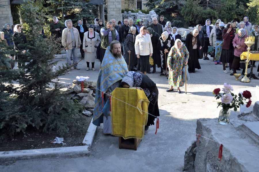 Первая после августовского обстрела перерыва служба была совершена 21 сентября, на праздник Рождества Пресвятой Богородицы. Община собралась под открытым небом − рядом с руинами церкви, которая не подлежит восстановлению.