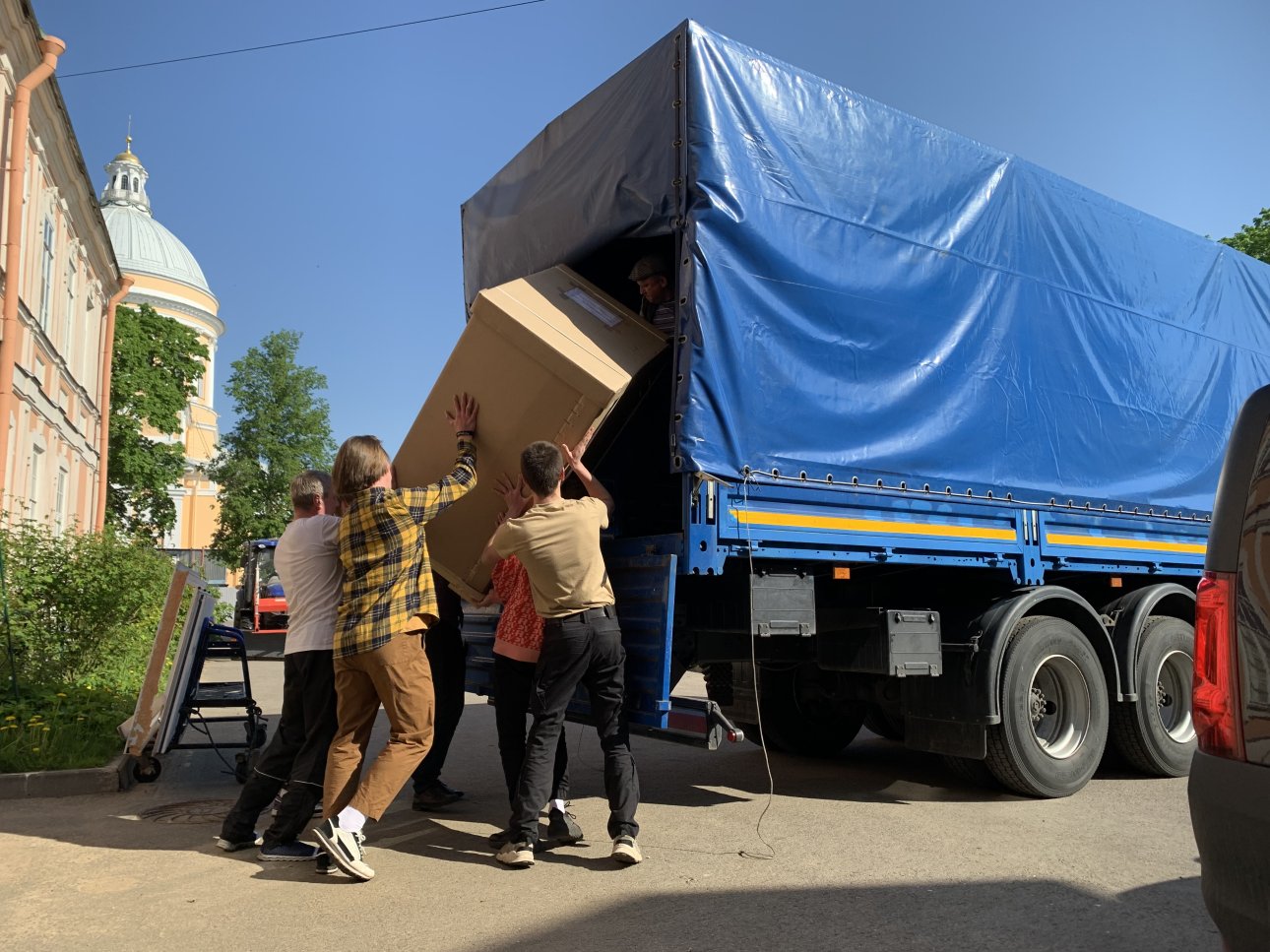 Приходы.ру 29.05.2023. Дополнительный груз богослужебных предметов и церковной мебели в рамках проекта «Храмы Петербурга — храмам Мариуполя» отправлен 24 мая из Александро-Невской лавры. Машина прибудет к месту назначения через несколько дней.