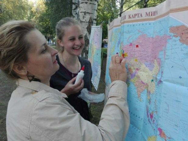 Активисты приходской молодежной организации установили на центральной аллее парка карты мира и Республики Беларусь. Суть акции заключалась в том, чтобы отметить флажками на картах города и страны, в которых проживают друзья участников. Цель ее проведения – еще раз показать, что, несмотря на огромные расстояния, люди помнят друг о друге и дорожат дружбой.