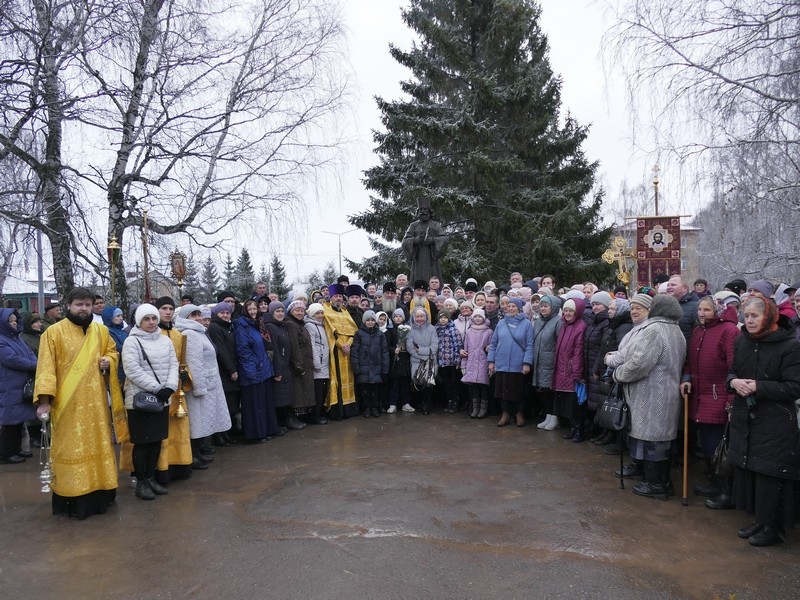 По завершении службы архипастыри, священники, прихожане храма и жители села прошли крестным ходом от храма святителя Николая Чудотворца к месту расположения памятника священномученику. После освящения монумента к его подножию были возложены цветы.