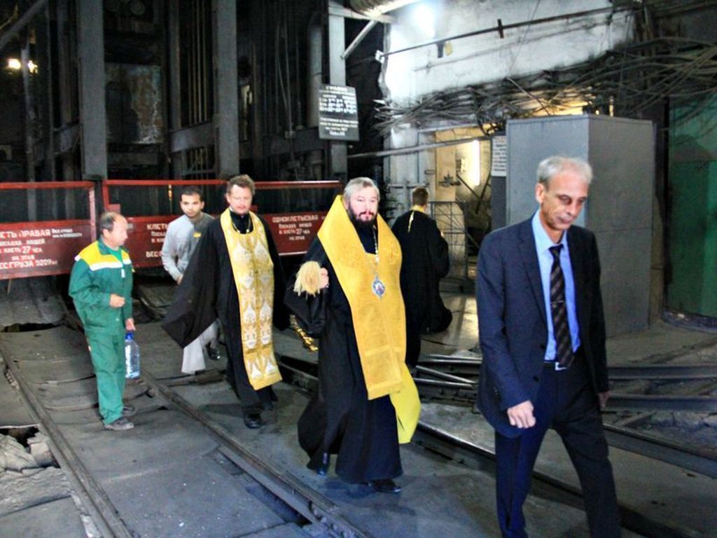 В этот день духовенство и весь персонал собрались на молебен у особого уголка, где работники ежедневно имеют возможность поставить свечки и помолиться перед образом Спасителя, Божией Матери и святых покровителей шахтерского труда – великомученицы Варвары, преподобномученицы Елисаветы Феодоровны, священномученика Александра, епископа Команского. Затем епископ Симон окропил святой водой помещения главного корпуса шахты, технику и сотрудников.