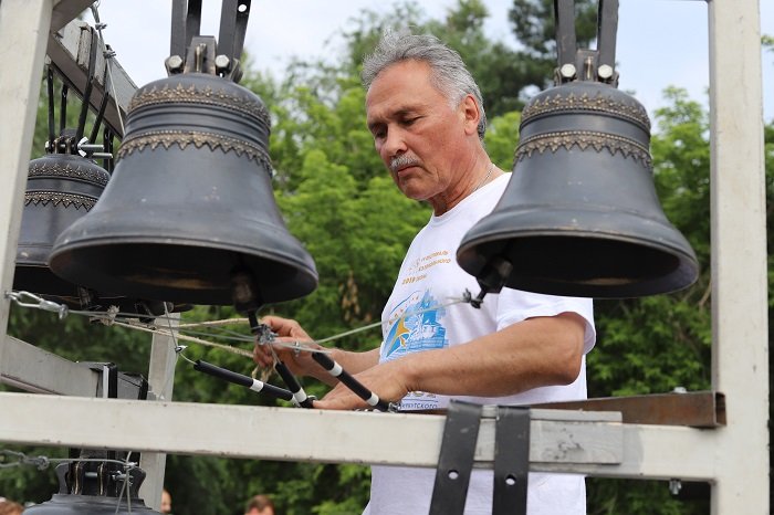 Днем звонари с передвижной звонницей объедут строящиеся храмы города. Духовенство совершит там молебны. Запланирован также круглый стол для звонарей.