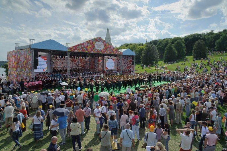 По традиции одной из кульминационных точек фестивальной программы станет исполнение самых любимых народных песен Большим хором. В сопровождении симфонического и духового составов Центрального военного оркестра Российской Федерации и Военного образцового оркестра Почетного караула Московского гарнизона все собравшиеся на «Русском поле» исполнят песни, выбранные в результате открытого голосования на сайте фестиваля.