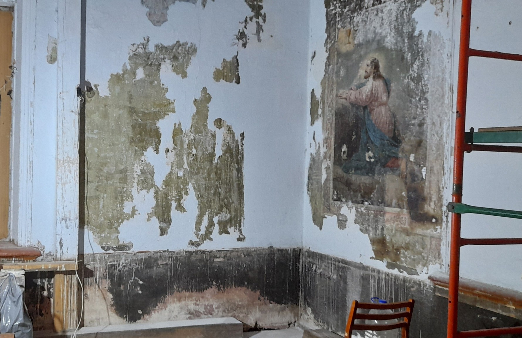 На алтарной стене сохранились две фрески, их очистили от известки. Это «Моление о Чаше» и «Рождество Христово». «Жители деревни при поддержке настоятельницы Верхне-Чусовской Казанской Трифоновой пустыни игумении Ксении усердно приводят здание храма в порядок», — написал глава Чусовского городского округа Сергей Белов на своей страничке в соцсети «Вконтакте».