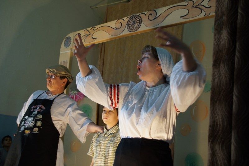 Мужчины одарили актеров подарками: каждому дали по картине местного художника и искусно вырезанные пасхальные яйца.