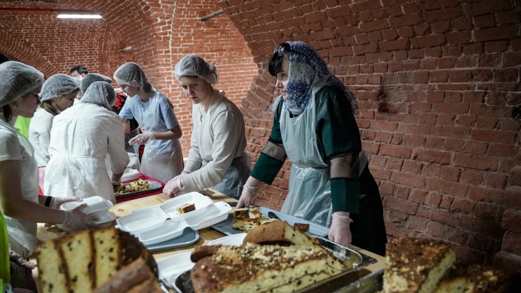 В ходе дальнейшего торжества гигантские пасху и кулич смогли попробовать все присутствовавшие на празднике. Помощь в организации оказали волонтеры Нижегородской епархии. В частности, они участвовали в раздаче кулича и пасхи.