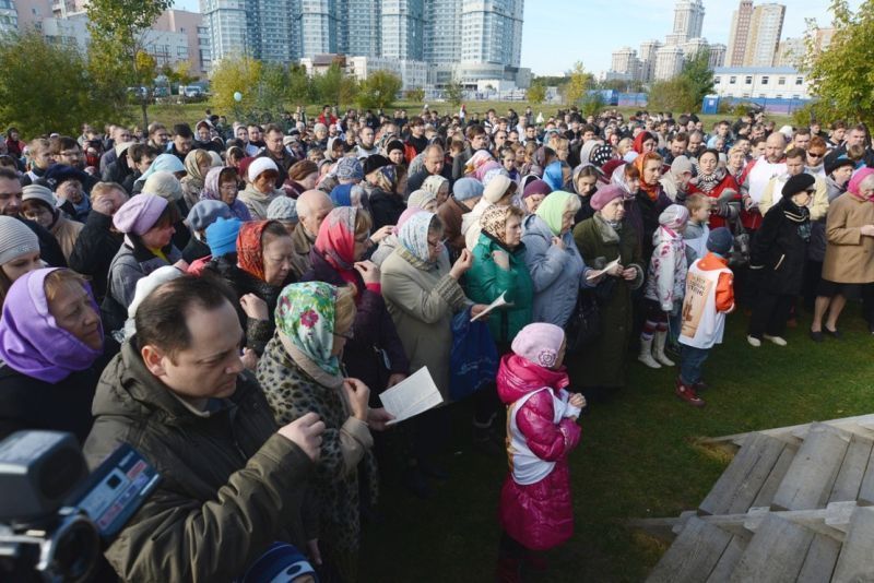 7 октября на Ходынке состоялось массовое молитвенное стояние за возрождение храма. Верующих приехали поддержать многие общественные организации − «Сорок сороков», Союз десантников России, Союз ветеранов спецподразделений «Альфа», «Ночные волки» и другие.