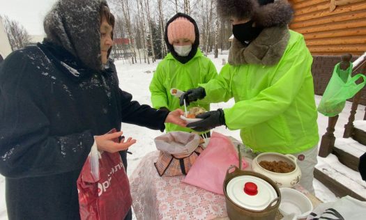 Приходы.ру. 21.12.2020. 17 декабря на территории нижегородского храма во имя великомученика и целителя Пантелеимона волонтеры провели очередную акцию «Накорми с добром». Бездомным раздали горячую еду.