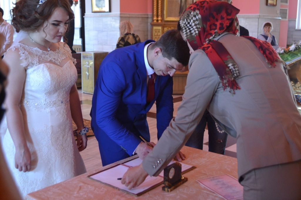 14 июля в кафедральном Спасо-Преображенском соборе Димитровграда произошло историческое событие: впервые после революции 1917 года в этом городе брак был зарегистрирован в стенах храма. Как пояснила начальник городского управления ЗАГС Людмила Сальникова, такая возможность была организована в честь столетия образования данной государственной структуры.
