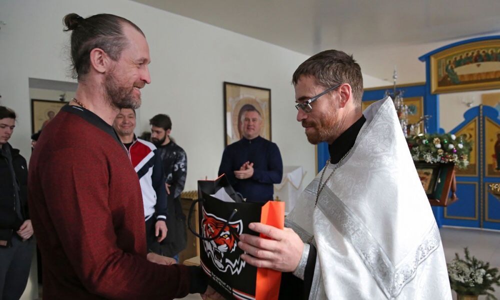 Хоккеисты и тренерский штаб хабаровского хоккейного клуба «Амур» посетили центр помощи бездомным «Надежда» и расположенный на его территории храм в честь иконы Божией Матери «Скоропослушница».