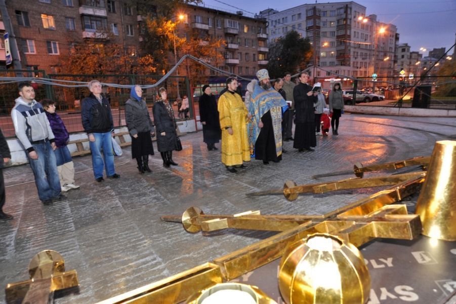 19 октября, в преддверии десятой годовщины теракта в Театральном центре на улице Мельникова, настоятель нового прихода святых равноапостольных Кирилла и Мефодия протоиерей Владимир Макеев совершил чин освящения крестов храма, возводимого в память жертв трагедии на Дубровке, сообщает сайт Фонда поддержки строительства храмов города Москвы