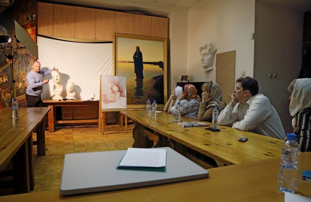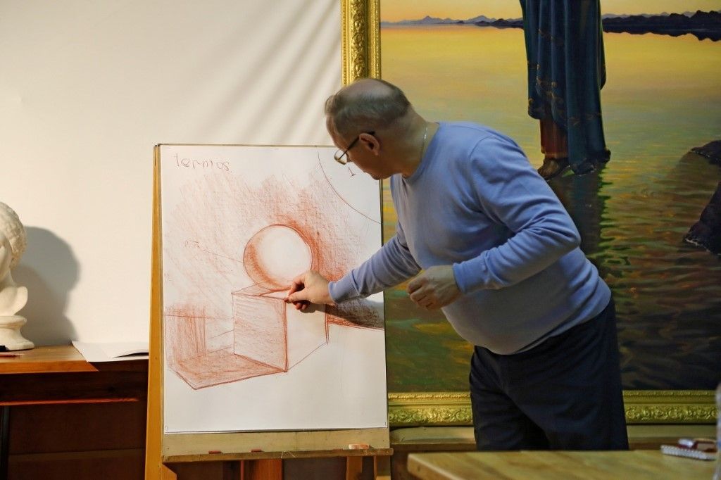 Первый мастер-класс начался приветственным словом священника Даниила Зубова, директора воскресной школы храма, который поздравил гостей мероприятия с днем памяти святого великомученика Димитрия Солунского, возглавил общую молитву перед новым начинанием и пожелал успехов руководителю и ученикам художественной школы. Отец Даниил отметил важность традиции академического рисунка, ее сохранения и развития.