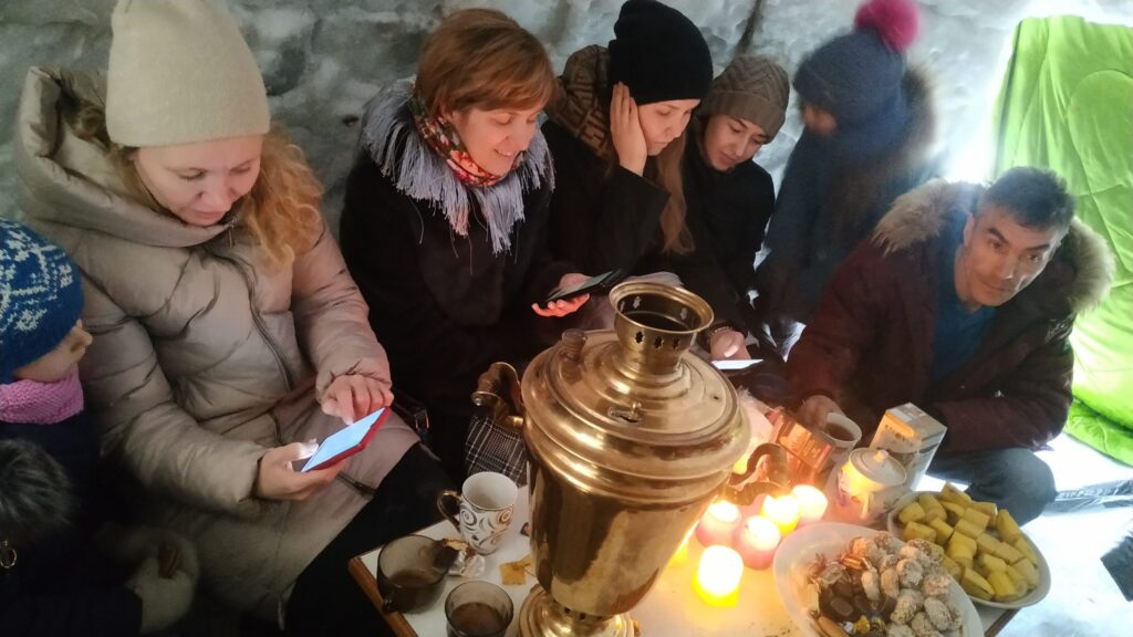 Приходы.ру. 30.03.2021. Прихожане Успенского храма г. Братска построили на его территории иглу. В ледяном доме +20, когда на улице −40. После посещения храма любой человек может зайти внутрь, зажечь свечу и выпить чаю.