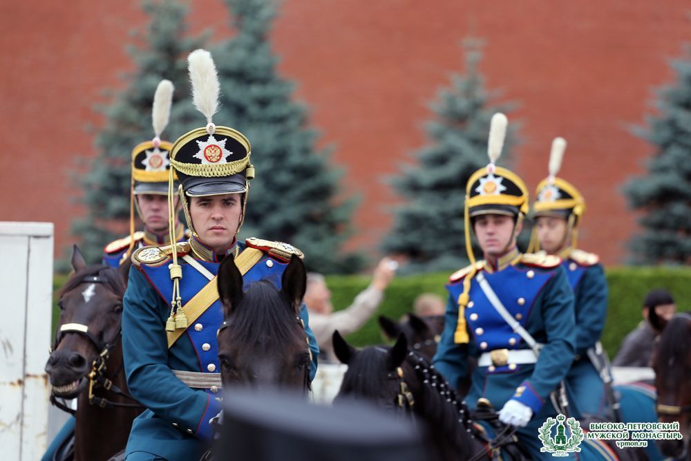 На Красной площади молились команда Кавалерийского почетного эскорта Президентского полка и Кремлевской школы верховой езды, попечители фестиваля «Спасская башня».