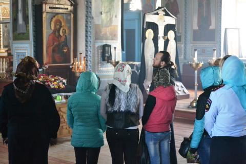 Один из клириков, священник Игорь Подопригорин, провел для гостей экскурсию по храму, подробно рассказав об иконах и разъяснив, как правильно нужно совершать молитву.