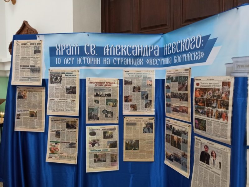 Приходы.ру. 25.02.2021. В храме во имя святого князя Александра Невского г. Балтийска Калининградской области открылась выставка «Храм св. Александра Невского: 10 лет истории на страницах „Вестника Балтийска“». Экспозиция посвящена десятилетнему юбилею храма и 800-летию со дня рождения благоверного князя. Обе даты отмечаются в этом году.
