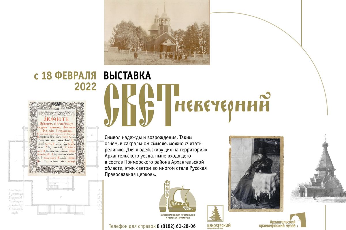 Приходы.ру. 21.02.2022. Выставка «Свет невечерний» открылась в музее народных промыслов и ремесел Приморья в поселке Уемском в пригороде Архангельска. Посетители имеют возможность узнать историю края через личные истории священнослужителей и прихожан.