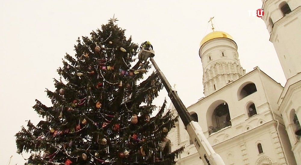 22 января на Соборной площади Кремля начали разбирать новогоднюю ёлку. Игрушкам, которые снимают с ветвей, и даже стволу дерева постараются найти достойное применение. Более тысячи шаров, звездочек, фигурок животных аккуратно упакуют и увезут на склад. Будут ли они украшением на следующих новогодних праздниках, решит специальный оргкомитет.