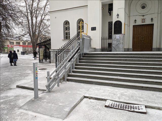 Приходы.ру. 16.11.2020. В екатеринбургском храме Рождества Христова в ноябре ввели в эксплуатацию электрический подъемный механизм для маломобильных людей. Уличный подъемник установлен в рамках проекта «Доступный путь к храму».