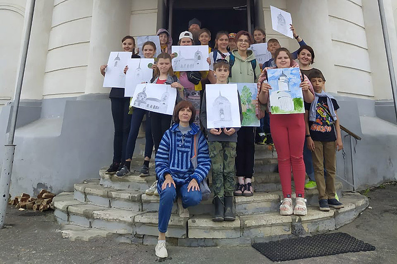 Приходы.ру. 25.06.2021. В июне ученики Мценской художественной школы побывали на пленэре на территории Свято-Троицкого храма города.