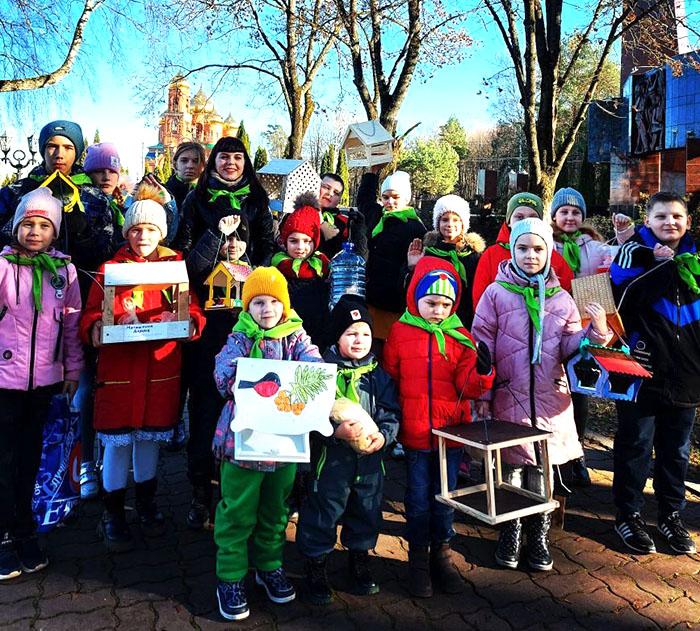 Приходы.ру 15.11.2022. В минувшие выходные в Клинцах Брянской области воспитанники воскресной школы кафедрального Богоявленского собора запустили общероссийскую акцию «Покормите птиц». Начало мероприятия приурочили к 12 ноября, так называемому Синичкину дню – российскому экологическому празднику, созданному по инициативе Союза охраны птиц России.