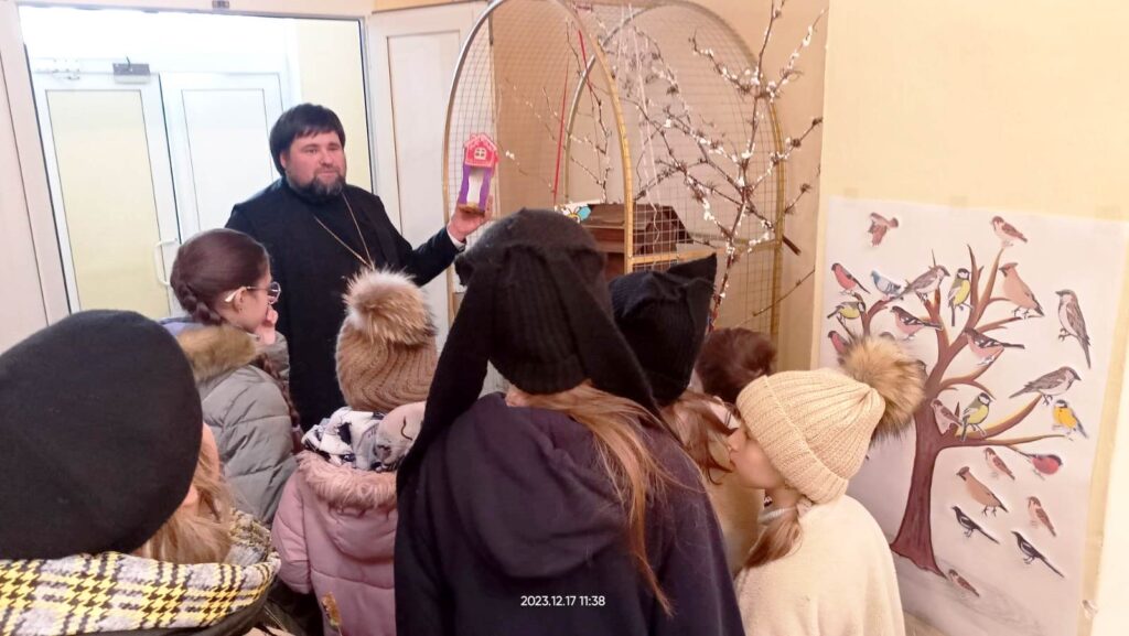 Директор воскресной школы Жанна Козий подготовила для ребят и их родителей квест, проходя который, они участвовали в создании кормушек, узнавали о зимующих в этой местности птицах, видах кормов. Например, для пернатых опасны чёрный хлеб, пшено, жареная и варёная еда – их рекомендуется подкармливать семечками, несолёным салом, сухим белым хлебом, яблоками.