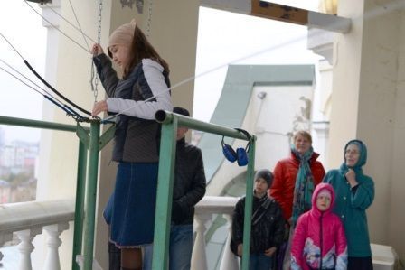 В субботу Пасхальной седмицы участница подросткового клуба Преображенского кафедрального собора Мария Сивкова провела для прихожан первую экскурсию на колокольню и мастер-класс по колокольному звону.