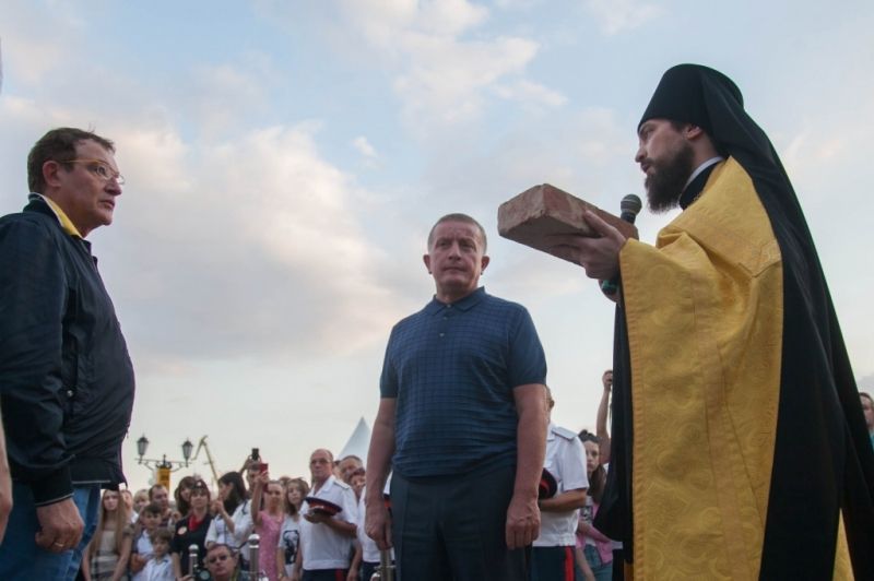 На набережной Ростова-на-Дону 23 июля состоялась закладка часовни-тетрапилона «Южные врата России». Освящение закладного камня совершил секретарь епархиального управления иеромонах Артемий (Кузьмин).