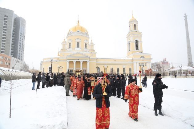 По окончании литургии духовенство епархии и горожане во главе с митрополитом Екатеринбургским и Верхотурским Кириллом пройдут крестным ходом от Свято-Троицкого собора до часовни святой великомученицы Екатерины. Именно здесь располагался Екатерининский кафедральный собор, уничтоженный до основания в годы советской власти. Сегодня на месте алтаря бывшего собора стоит часовня, в которой с 2014 года регулярно совершаются Божественная литургия и другие богослужения.