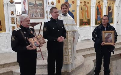 Образ принял настоятель храма протоиерей Сергий Акименко, сообщает «Благословенный Кавказ». Священник рассказал как в 2017 году казак из Кисловодска Олег Фомченков-Бровко вернул в Россию старинную русскую икону, которая пробыла в братской Сербии сто лет. В ответ казаки Кисловодской общины имени цесаревича Алексия передали казакам Сербии икону великомученика и целителя Пантелеимона.