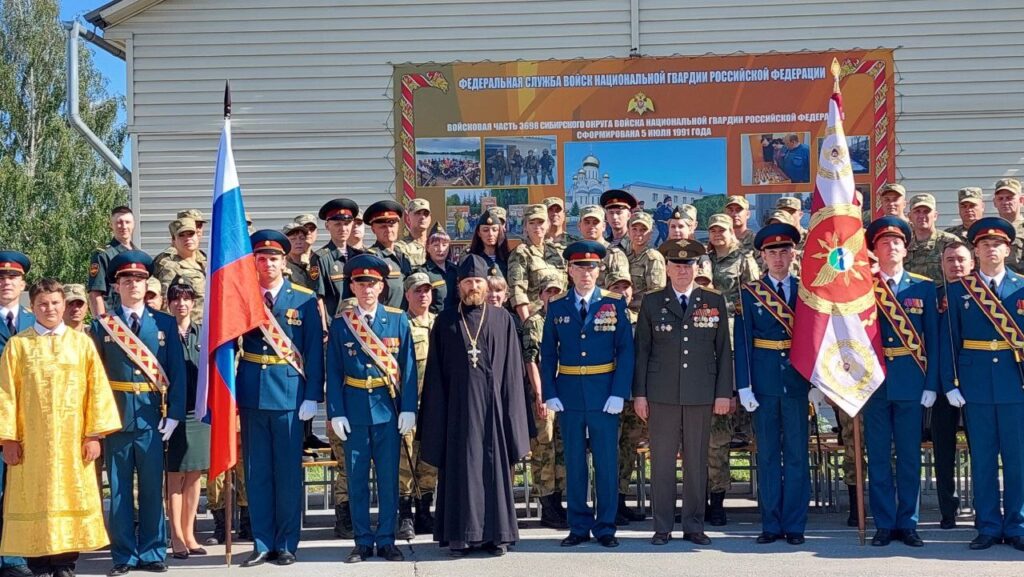 Чин освящения боевого знамени игумен Николай (Трачев) совершил накануне, сообщает сайт Новосибирской митрополии. В обращении к военнослужащим части он отметил, что на нем изображена икона святого Георгия Победоносца — небесного покровителя воинства. Знамя — официальный символ и воинская реликвия, к которой подобает относиться как к святыне. Отец Николай выразил уверенность, что оно находится в надежных руках.