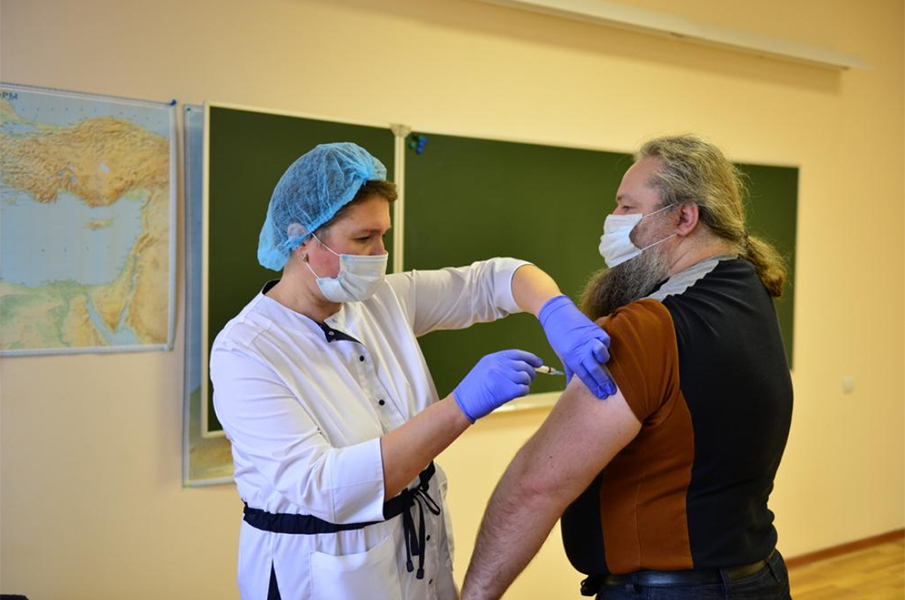 Приходы.ру. 15.11.2021. 9 ноября на территории Центра подготовки церковных специалистов Брянской епархии провели массовую вакцинацию против COVID-19. Привились клирики и работники храмов, а также сотрудники Центра и Брянского епархиального управления.