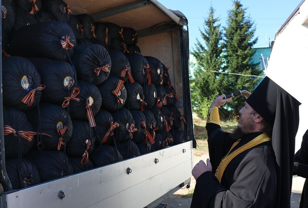 Благотворительный сбор в храмах и монастырях Орловской митрополии начался в июне.  Общий вес груза превышает 20 тонн: это комплекты детской и взрослой одежды, продукты питания, вода, предметы личной гигиены.  Конечная точка маршрута — лагерь «Красный партизан» на территории Ростовской области, где находятся 1200 украинских беженцев — пенсионеров, инвалидов, детей.
