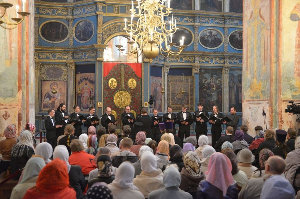 Под сводами древнего храма выступили хоровые коллективы города и вологодских приходов, которые исполнили духовные песнопения, песни на стихи русских поэтов, народные, патриотические и казачьи песни. В числе выступавших – мужской хор Вологодской областной государственной филармонии имени В.А. Гаврилина, молодежный хор Вологодского государственного университета «Хоровая механика», хоры церкви Покрова на Торгу и Спасо-Прилуцкого Димитриева мужского монастыря, хоровая академическая капелла имени В.М. Сергеева. Вел концерт ректор духовного училища Вологодской епархии протоиерей Алексей Сорокин.Трансляция концерта хоровой музыки осуществлялась на большой экран, установленный рядом с Софийским собором.