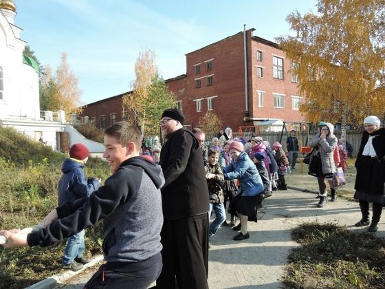 На Руси совместное квашение капусты всегда сопровождалось весельем, играми и песнями. Настоятель храма провел традиционную игру – перетягивание каната. Также для всех желающих организовали бой на мягких мечах среди детей и мужчин, бой на подушках, стрельбу из воздушного оружия. Директор воскресной школы Светлана Дубовик провела на детской площадке народные игры. Для самых маленьких прошла эстафета.