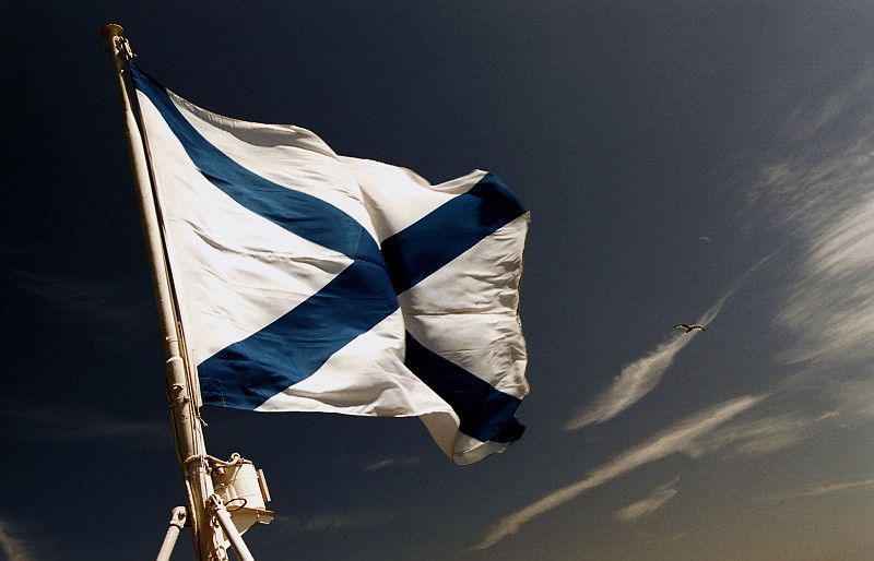 Главным корабельным кормовым флагом флота России считается Андреевский флаг. Он представляет собой пересечение двух синих полос на белом фоне, что символизирует «косой» крест, на котором был распят святой апостол Андрей Первозванный. Этот флаг был учрежден в 1699 году Петром I. В 2000 году Андреевский флаг вновь учрежден законом Российской Федерации как знамя Военно-морского флота России.