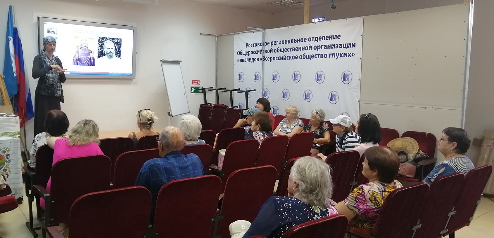 Лекция «Путешествие по Донскому краю» прошла в актовом зале Ростовского регионального отделения Всероссийского общества глухих. Встреча сопровождалась синхронным сурдопереводом. Гостям продемонстрировали презентацию с множеством иллюстраций, а также подборку интересных фактов о Донском крае, сообщает сайт Ростовской епархии.