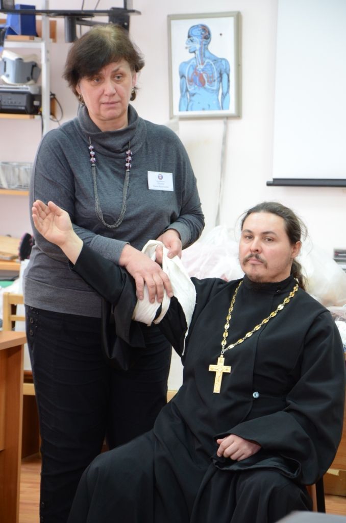 Священнослужителям рассказывают о чрезвычайных ситуациях, характерных для красноярского края, а также о тех, которые свойственны конкретным районам их проживания. Слушателей учат мерам пожарной безопасности, первичным методам пожаротушения, обращению с огнетушителями, грамотной эвакуации прихожан из храма в случае пожара и, конечно, оказанию доврачебной помощи при кровотечениях, травмах, а также проведению реанимационных мероприятий.