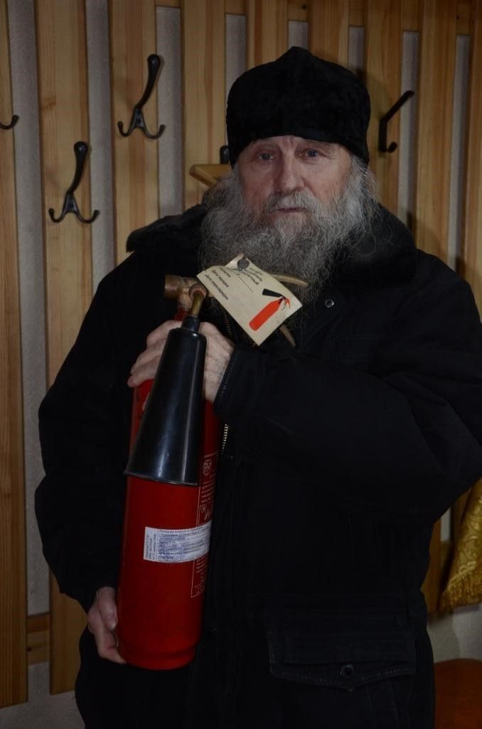 По окончании теоретической части курса все слушатели с помощью порошкового огнетушителя тушили реальный огонь, а затем в Никольском храме священники отрабатывали практические действия по ликвидации условного пожара; настоятель помог эвакуироваться всем прихожанам и вынес из условного огня святыни.