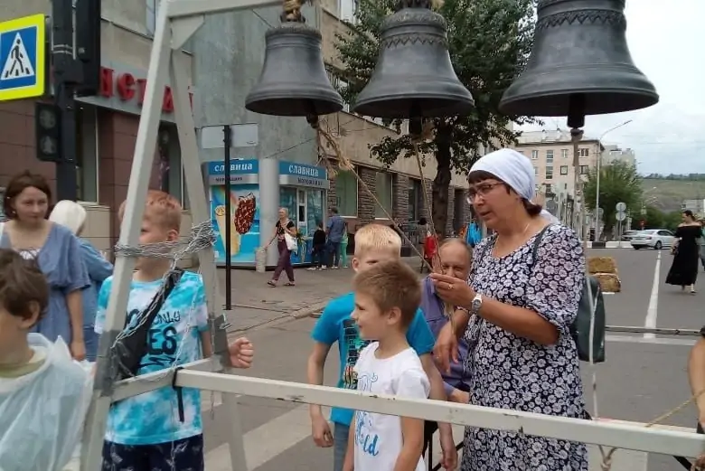 Приходы.ру. 03.08.2022. В минувшую субботу на одной из площадок проекта «В центре Мира» в Красноярске была установлена звонница. Звонари храма святителя Николая Чудотворца давали мастер-классы, позвонить в колокола мог любой желающий.