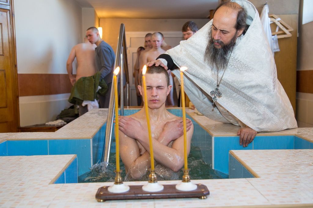 16 марта в Богоявленском соборе Ногинска крещение приняла группа военнослужащих срочной службы из воинской части № 19889, которая расположена в подмосковном поселке Большое Буньково.