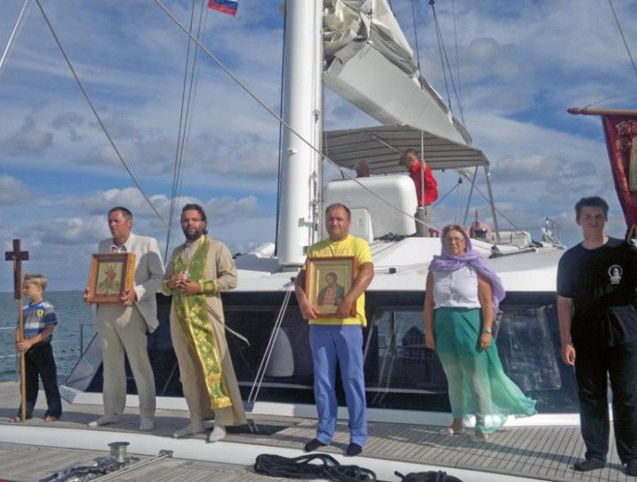 Во время пеших переходов от яхты до храмов духовник крестного хода иерей Михаил Викторов совершал молебны, на которых возносились молитвы о России, о мире на Украине, и литии о невинно убиенных во все времена и в украинской междоусобице у мемориальных памятников павшим воинам.